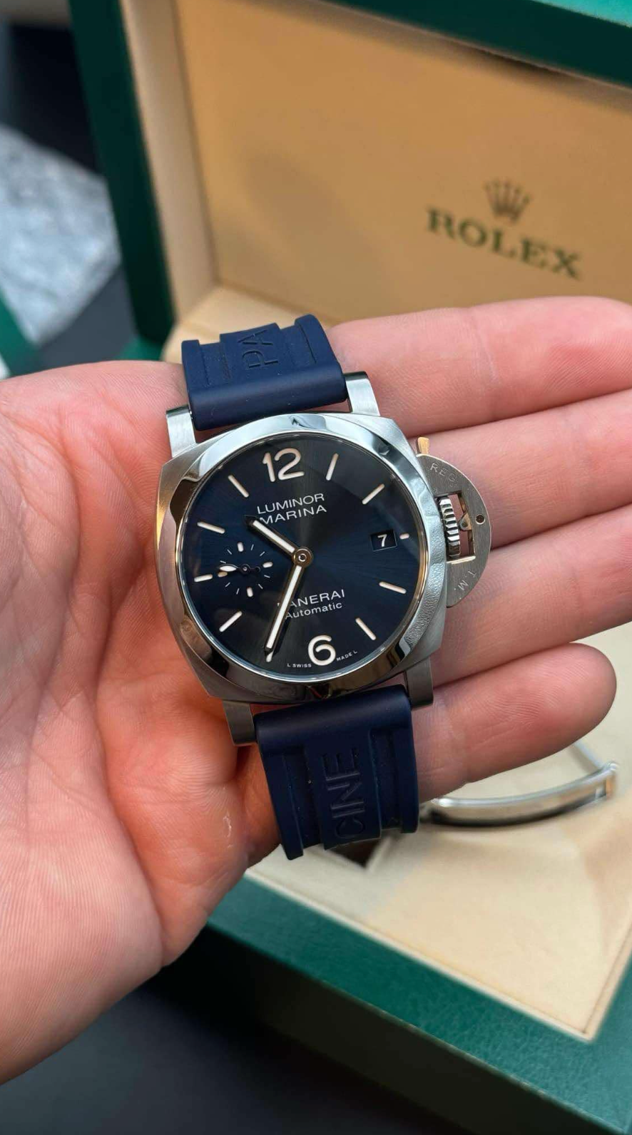 Blue leather strap not included. Will come with Rubber strap (Panerai).