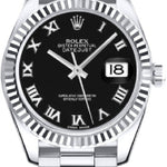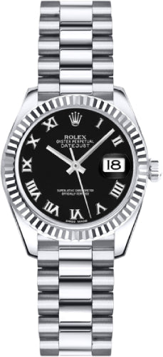 Rolex Datejust 31 White Gold/Steel Bright Black Roman Dial & Fluted Bezel Oyster Bracelet | 278274