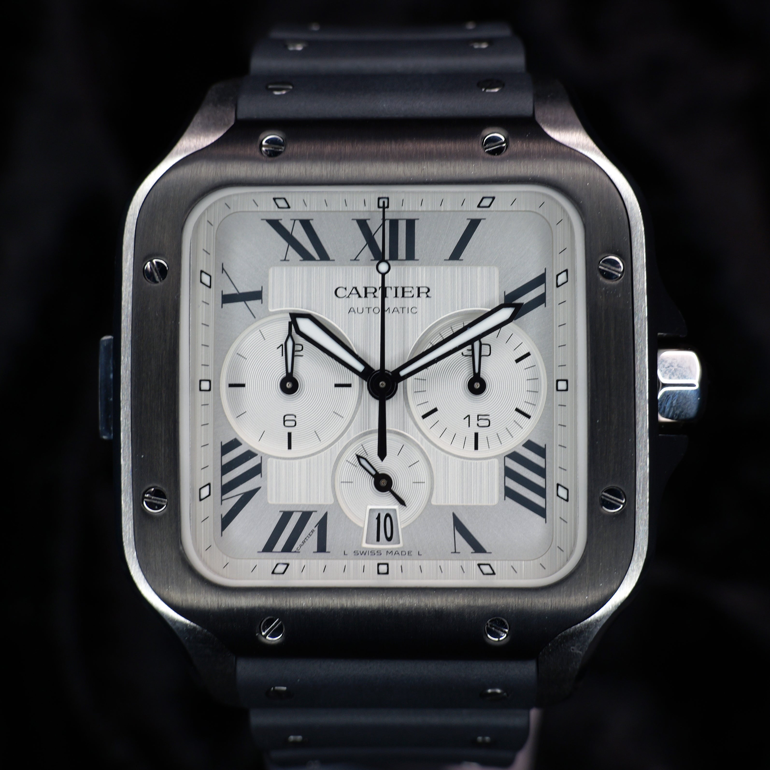 Cartier Santos de Cartier Chronograph WSSA0017 41MM x 54MM Steel White Dial Full Set WARRANTY