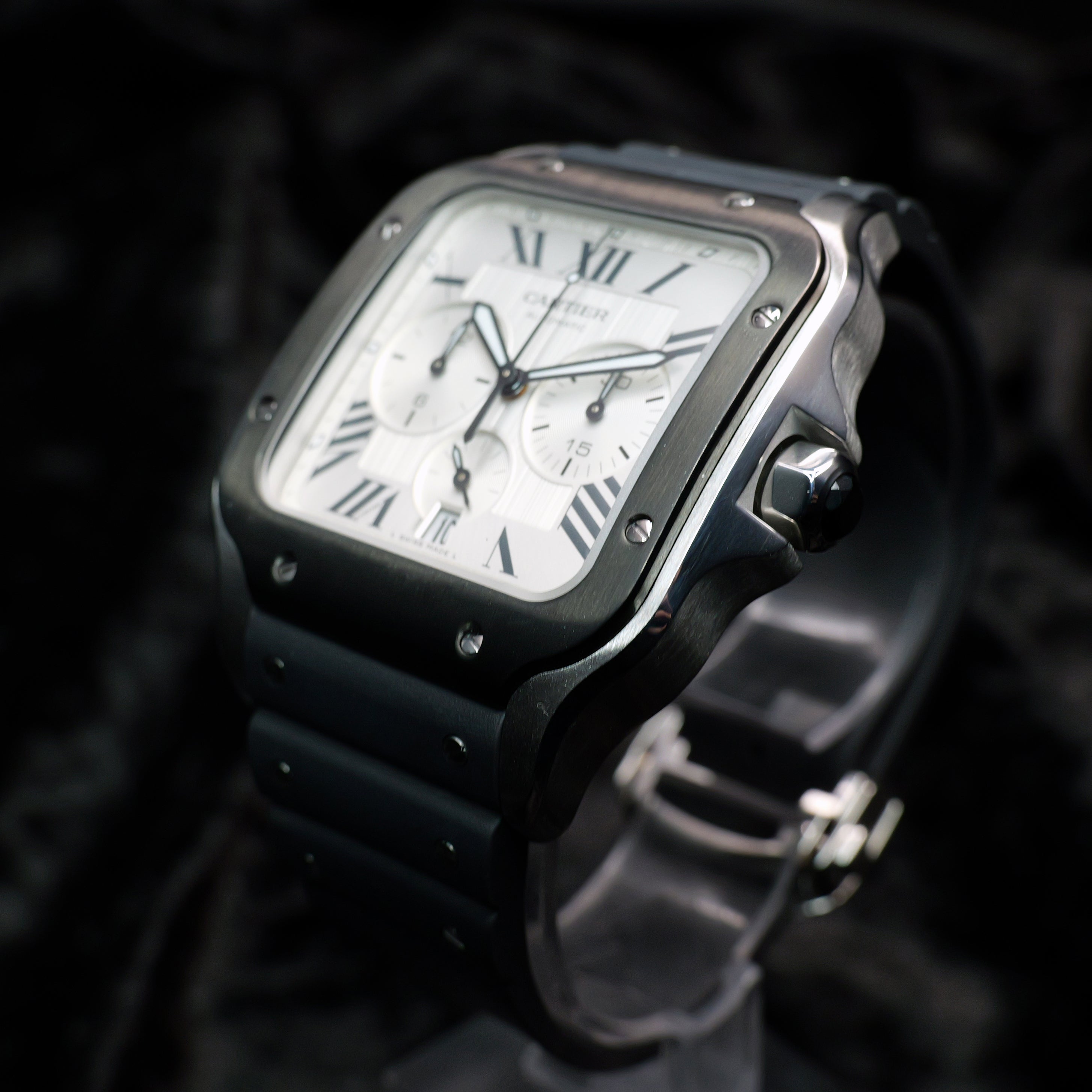 Cartier Santos 100 XL Chronograph W20090X8 42MM White Dial WARRANTY