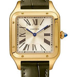 43.5 mm x 31.4 mm 18K yellow gold case, crown set with a cabochon sapphire, sapphire crystal, champagne dial, caliber 430 MC manual movement, green patina alligator leather strap, 18K yellow gold ardillon buckle. Water resistant to 3 bar (approx 30 meters/100 feet).