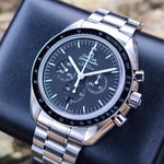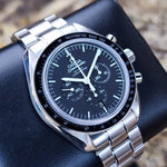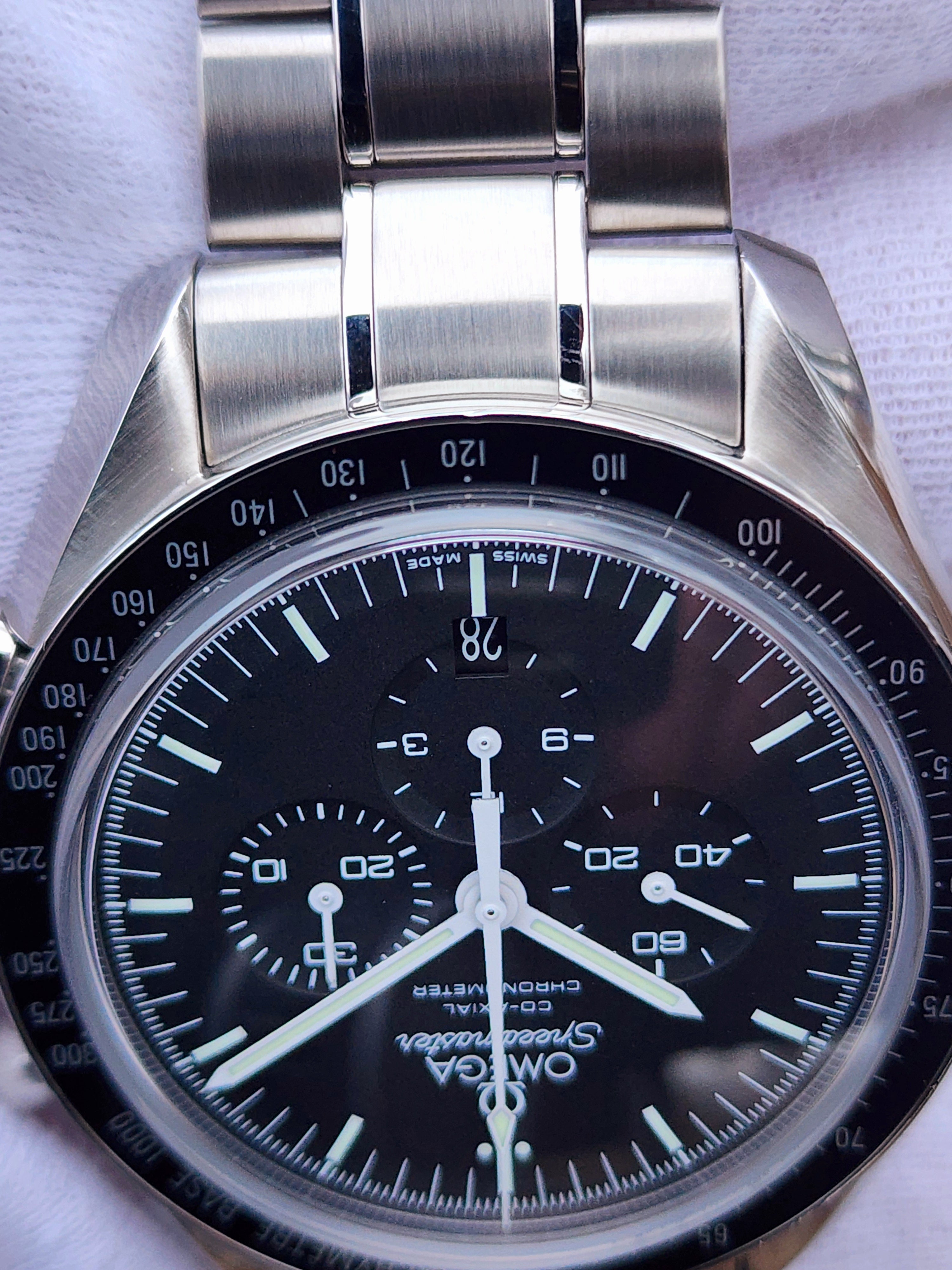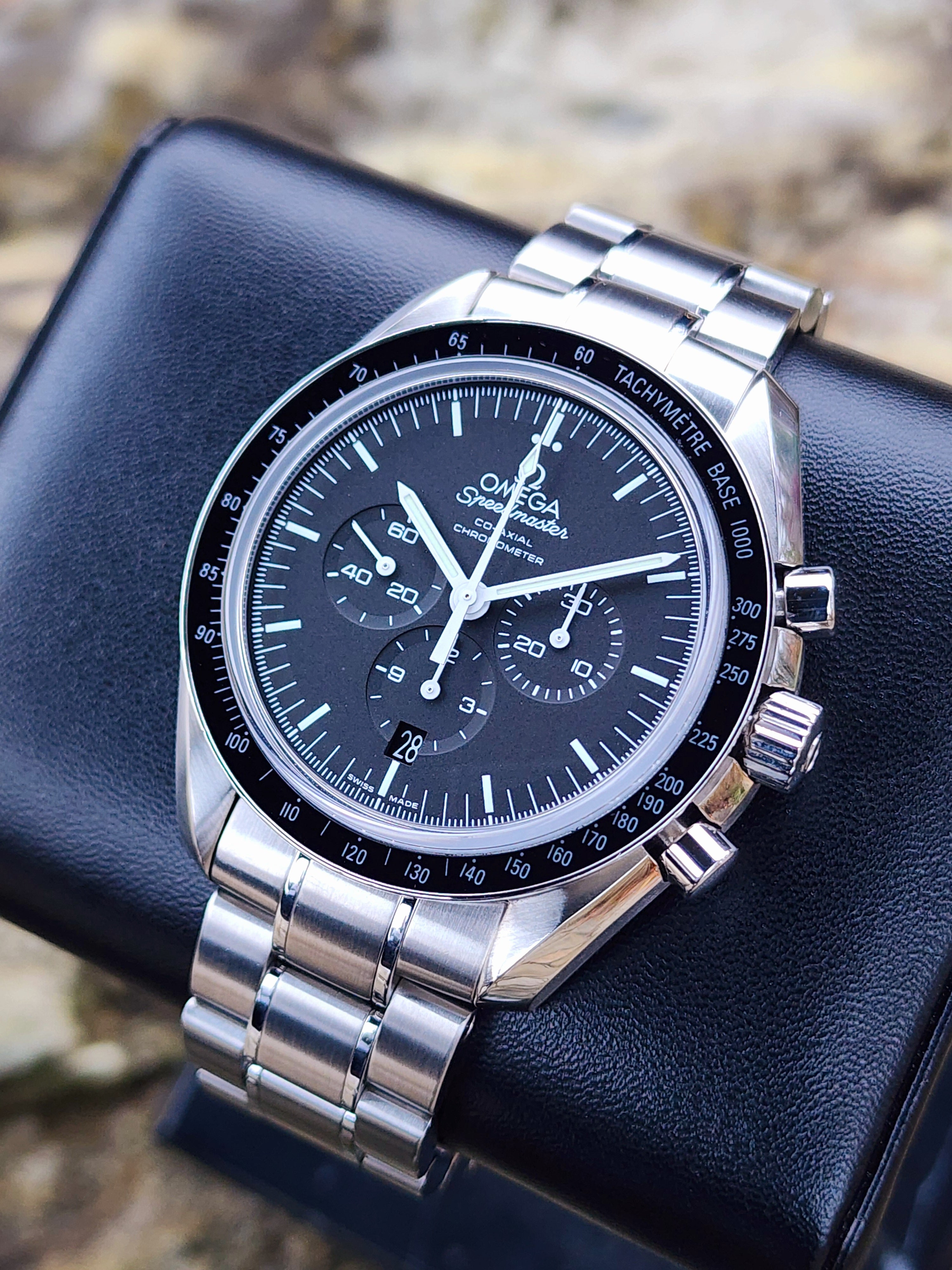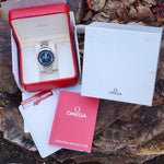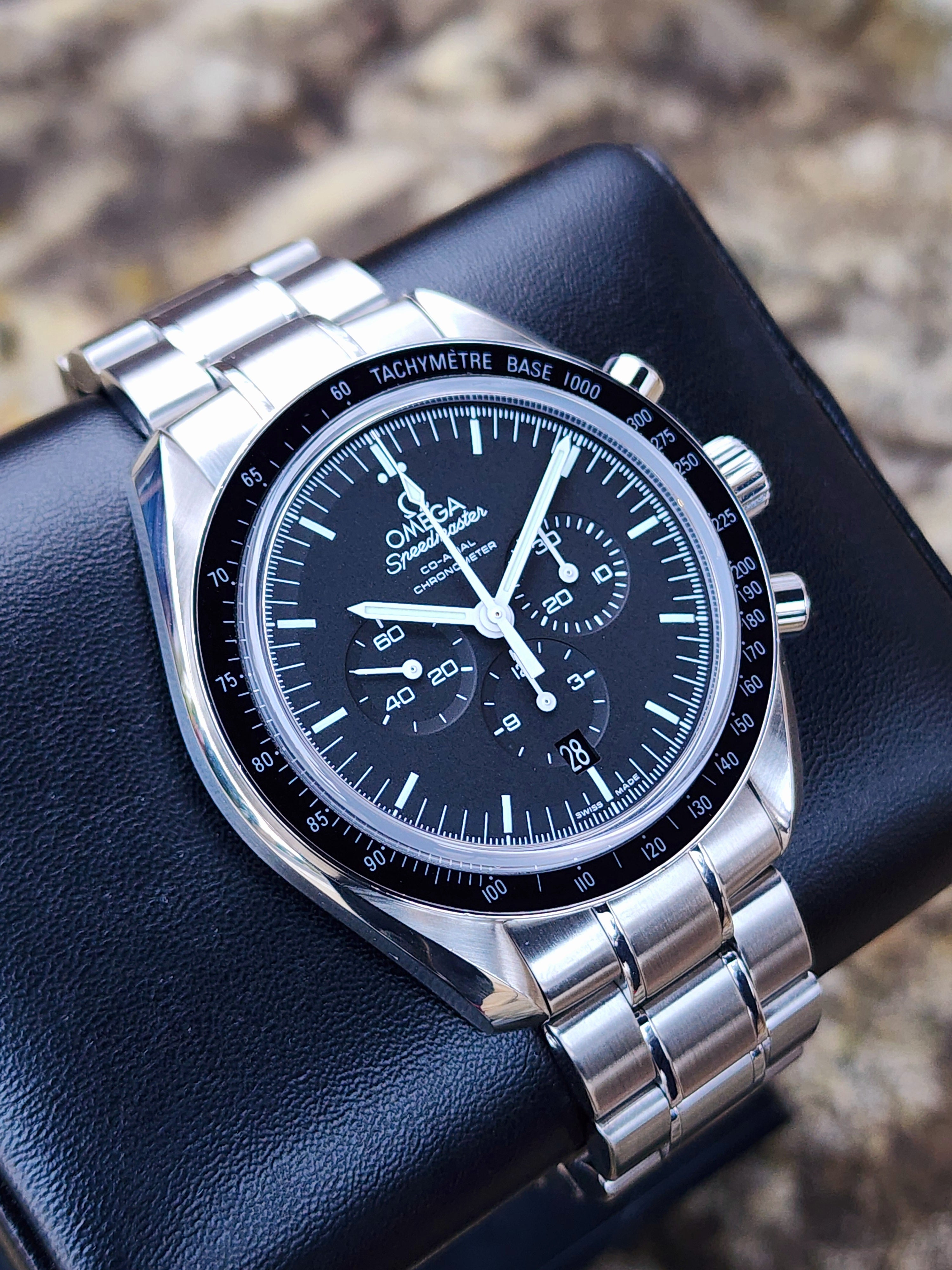 Up for sale is the Omega Speedmaster Moonwatch Co-Axial featuring the rare combination of both a Chronograph & Date function, reference 311.30.44.50.01.002 with 44mm case size. Watch comes double-boxed with Operating Instructions and warranty card. Timepiece is dated 2013. MSRP $8,700. It was recently placed on a timegrapher and is running well. Do excuse the dust/lint in the pictures as all of our watches are photographed outdoors in natural lighting/conditions. The serial numbers have been blurred for privacy. This timepiece is in excellent condition with little to no signs of wear. Timepiece is located in Indiana.
