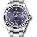 Rolex Steel and White Gold Datejust 31 Watch - Fluted Bezel - Aubergine Roman Diamond 6 Dial - Oyster Bracelet - 278274 aubdr6o