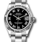 Rolex Steel and White Gold Datejust 31 Watch - Fluted Bezel - Black Roman Dial - Oyster Bracelet - 278274 bkro