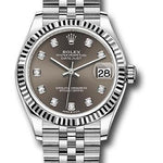 Rolex Steel and White Gold Datejust 31 Watch - Fluted Bezel - Dark Grey Diamond Dial - Jubilee Bracelet - 278274 dkgdj