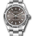 Rolex Steel and White Gold Datejust 31 Watch - Fluted Bezel - Dark Grey Index Dial - Oyster Bracelet - 278274 dkgio