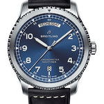 Breitling Aviator 8 Automatic Day & Date 41 Watch - Steel Case - Blue Dial - Black Leather Strap - A45330101C1X1