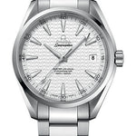 41.5 mm stainless steel case, transparent back, domed scratch-resistant sapphire crystal anti-reflective treatment on both sides, silvery dial includes a transferred wave pattern as well as rhodium-plated hands and indexes that have been coated in white Super-LumiNova, Caliber Omega 8500 self winding movement with co-axial escapement, chronometer, date, approximately 60 hours of power reserve, stainless steel bracelet. Water resistant to 15 bar (150 metres / 500 feet).