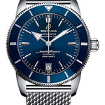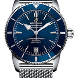 42.00 mm steel case, 14.35 mm thick, screw-locked crown with two gaskets, unidirectional ratcheted bezel, cambered sapphire crystal with glareproof treatment on both sides, gun blue dial, Breitling 20 self-winding movement with calendar via dial aperture and chronograph function, approximately 70 hours of power reserve, steel Ocean Classic bracelet. Water resistant to 200 m (660 ft).