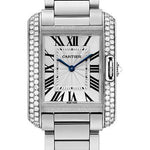 Cartier Tank Anglaise Watch - 34.7 mm White Gold Diamond Case - Diamond Bezel - Silver Diamond Dial - WT100028