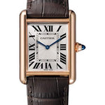 33.7mm x 25.5mm 18K pink gold case, 6.6mm thick, beaded crown with a sapphire cabochon, mineral crystal, silvered dial, caliber 8971 MC manual movement, brown alligator skin strap, 18K pink gold ardillon buckle. Water resistant to 30 meters.