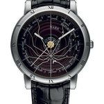 41mm platinum case, sapphire crystal, Caliber UN-83 Self-winding movement with astronomical wristwatch, perpetual movement, leather strap, folding buckle. Water resistant to 30m.