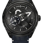 43 mm carbonium‰¨ matte-finish and titanium with black dlc case, Caliber UN-230 self-winding movement, alligator strap. Water resistant to 50m.