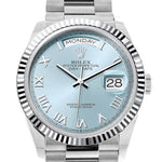 The Rolex Day-Date 36 Ice Blue Roman Dial Fluted Bezel Platinum President Watch is not just a timepiece but a symbol of timeless sophistication—a testament to Rolex's legacy of precision, craftsmanship, and unparalleled luxury.