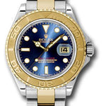 40mm stainless steel case, 18K yellow gold rotatable time lapse bezel, blue dial, and stainless steel and 18K yellow gold Oysterlock bracelet.