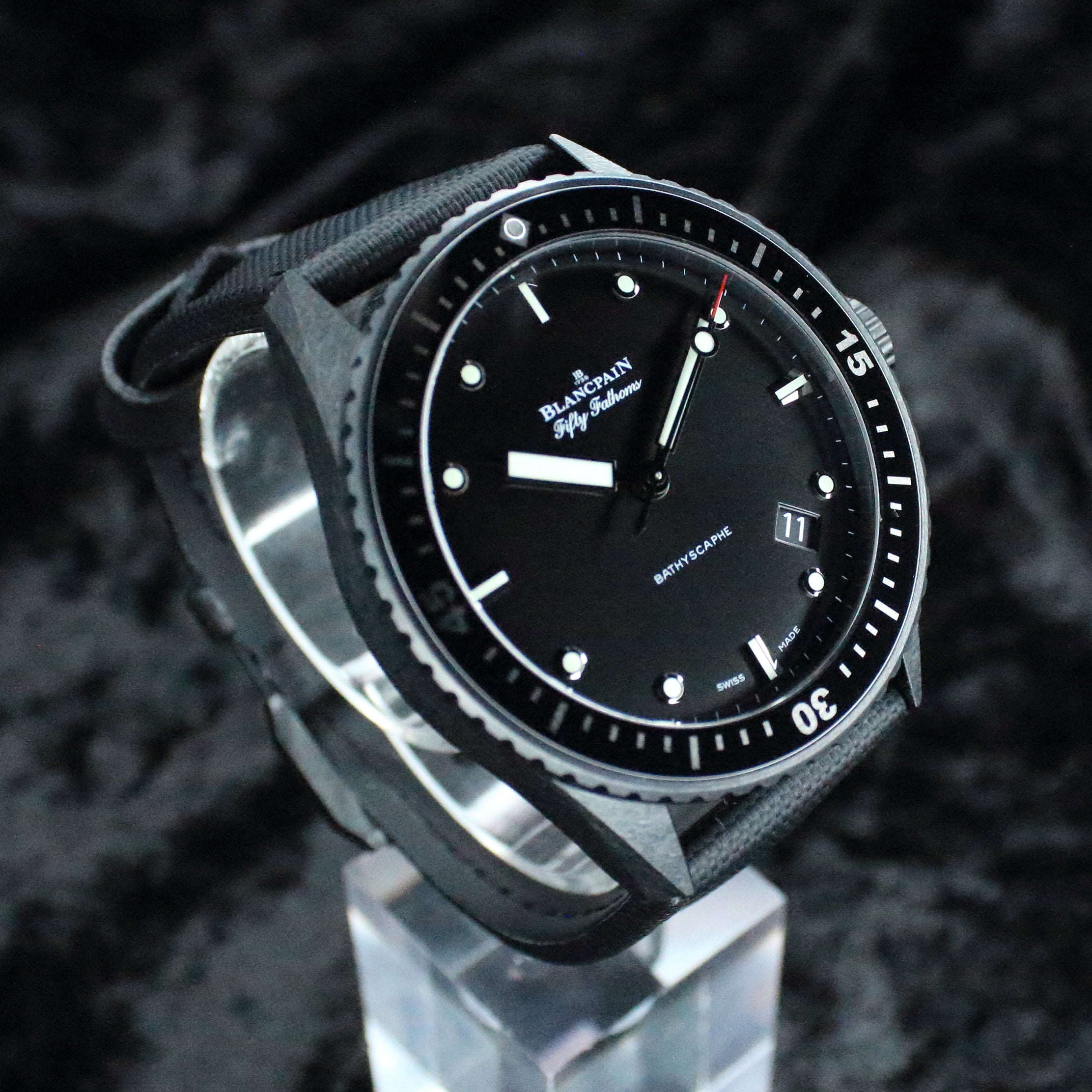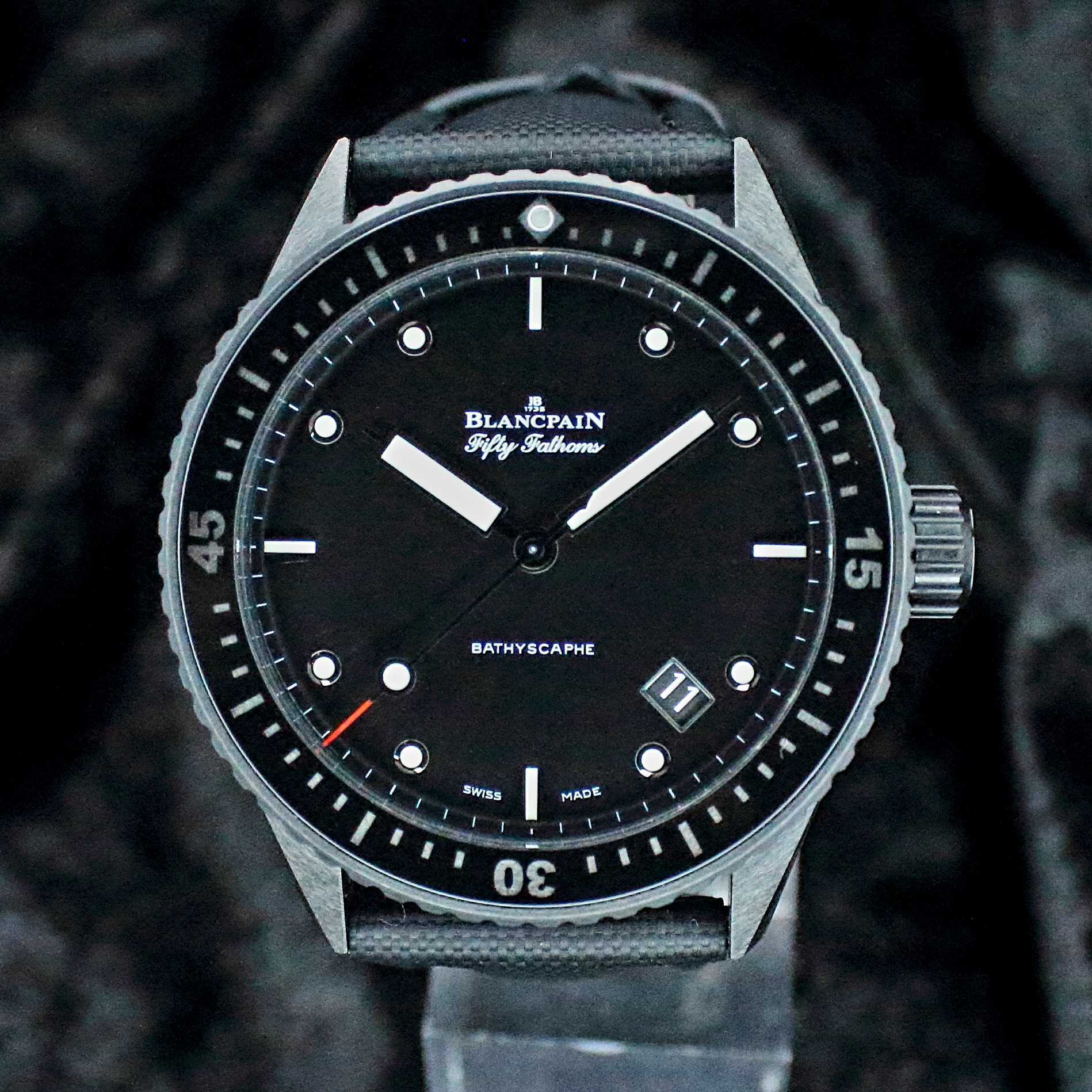 Up for sale is the Blancpain Fifty Fathoms Bathyscaphe 5000 0130 B52A 43MM Ceramic Black Dial with Blancpain booklet, warranty card, service booklet, divers logbook, register of connoisseurs letter, travel case, and is double boxed. Watch is dated 2018. MSRP $16,700. It was recently placed on a timegrapher and is running well. All of our watches are photographed under high intensity light with a macro lens. Any flaws will be significantly magnified. The serial numbers have been blurred for privacy. Timepiece is in excellent condition showing little to no signs of wear. Timepiece is located in Indiana.