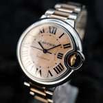 Up for sale is the Cartier Ballon Bleu W6920098 33MM Steel Mother of Pearl Dial with Booklet holder, Instructions booklet, Certification booklet, and is boxed. Watch is dated 2016. MSRP $9300. It was recently placed on a timegrapher and is running well. All of our watches are photographed under high intensity light with a macro lens. Any flaws will be significantly magnified. The serial numbers have been blurred for privacy. Timepiece is in excellent condition showing little to no signs of wear. Timepiece is located in Indiana.