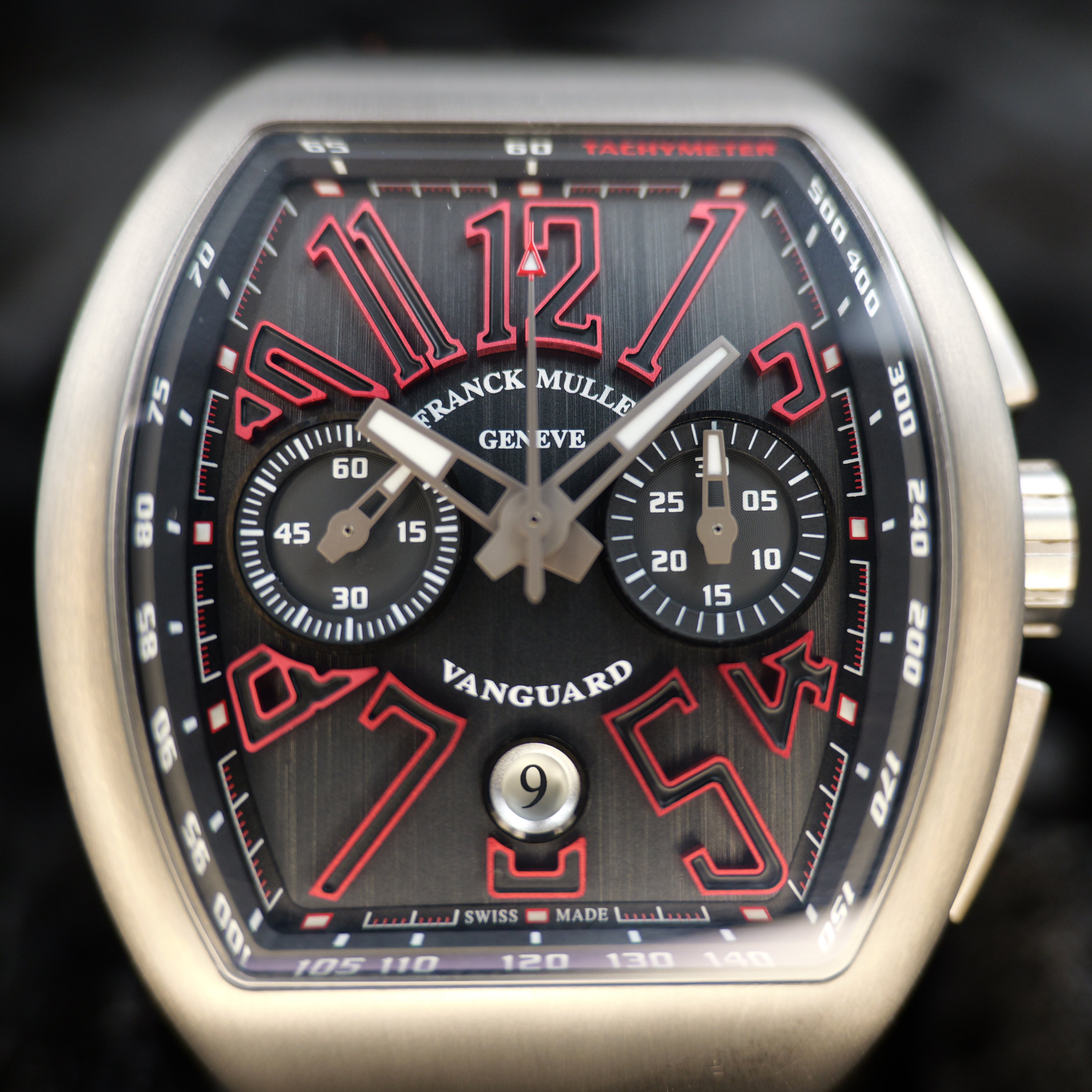 Up for sale is the Franck Muller Vanguard Yachting V45 CC DT 44MM Black Titanium Grey Dial with Master of Complications, Certificate of Origin and Warranty, and is double boxed. It was recently placed on a timegrapher and is running well. MSRP $17,000 All of our watches are photographed under high intensity light with a macro lens. Any flaws will be significantly magnified. The serial numbers have been blurred for privacy. Timepiece is in excellent condition showing little to no signs of wear. Timepiece is located in Indiana.
