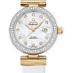 34 mm steel - yellow gold case set with diamonds, transparent back, self-locking crown, steel bezel paved with snow-set diamonds, sapphire crystal with anti-reflective treatment on both sides, white dial set with 11 diamonds indexes, caliber 8520 self-winding movement with date window at 3 o'clock, approximately 50 hours of power reserve, white leather strap. Water resistant to 100 m (330 ft).