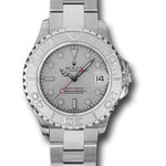 29mm stainless steel case, platinum rotatable time lapse bezel, platinum dial, and Oysterlock bracelet.